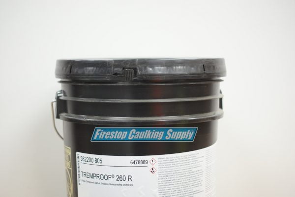 Typical applications for TREMproof 260 include foundation walls, retaining walls and most backfilled applications. TREMproof 260 is also designed for use in approved methane barrier applications. Contact Tremco Technical Services for additional information regarding methane barrier applications. – 18.9L – 5 Gal – Black